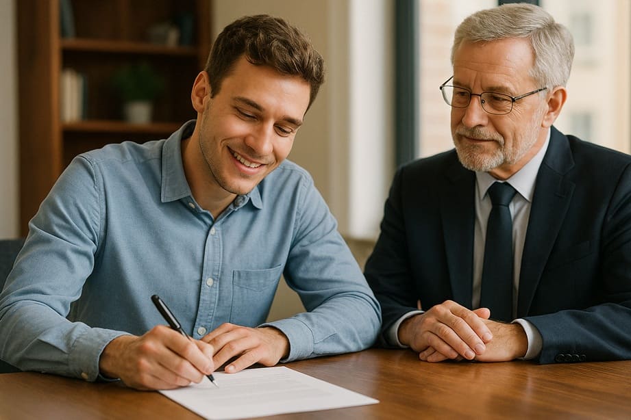 Vom Kaufvertrag bis zur Unterschrift beim Notar – wir gewährleisten, dass dein Immobiliengeschäft rechtlich einwandfrei abgewickelt wird und du rundum abgesichert bist.